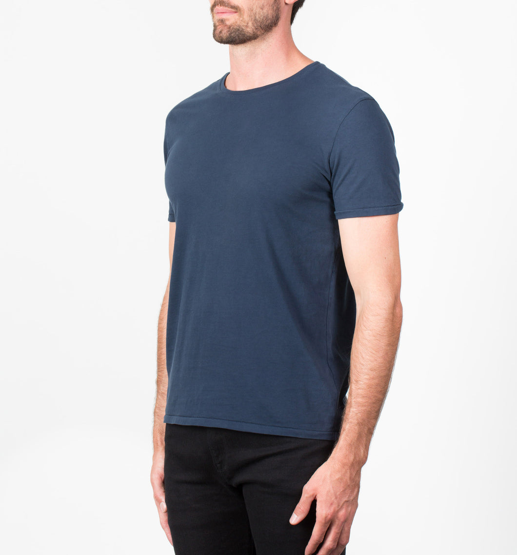 It all starts with the fabric. Our t-shirts are made from a 7-ounce, Buhler Supima cotton, grown in California. Buhler yarns are widely regarded as the best quality yarns in the world. Supima is the king of cotton, boasting the longest cotton fibers making it considerably softer and stronger that traditional cotton. Our fit is contoured and provides a slimming effect. Shoulders are chain-stitched with a tape fabric for maximum comfort. The ribbed collar is finished with a single needle stitch around the edge of the seam to prevent curling. Every shirt is then garment-dyed and put through an enzyme and silicon wash for an incredibly soft finish. Very few brands achieve this level of fabric and construction for a t-shirt. The ones we know of are $70 +.