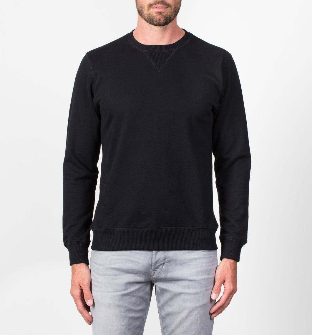 We built this sweater with the same 14 ounce French Terry cotton as our Hoodie. Its substantial weight makes it durable, yet the 100% cotton French Terry breathes, allowing it to be worn any time of year. All seams are reinforced with 5-needle stitching. The 2 x 1 ribbed side panels provide maximum comfort and fit. The collar, v insert, cuffs and waistband all share the same 2 x 1 rib. The 5-needle stitch finishes the v-insert with precision making this a stylishly elevated sweater.